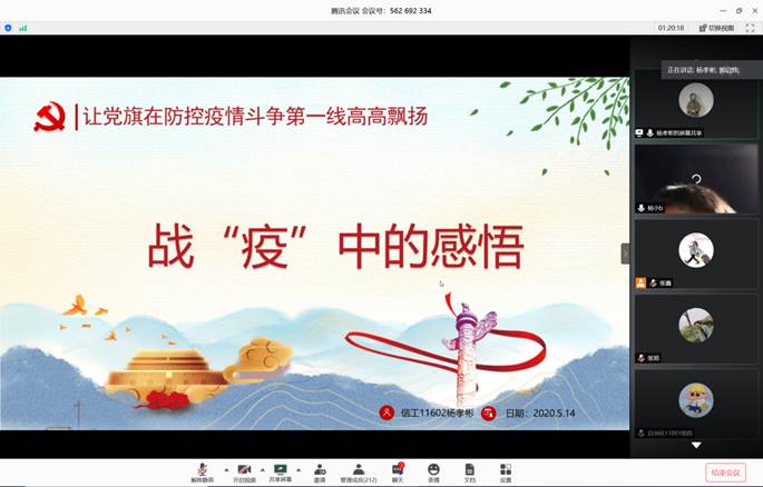 (通讯员 张鑫)为深入学习贯彻落实中央关于统筹推进疫情防控和经济社会发展的决策部署,切实做好本科生思想政治教育工作,引导员工做有理想、有本领、有担当的社会主义新青年,5月14日晚19:00,电信公司召开员工战“疫“故事分享会,党委副书记郭启炜、全体辅导员、全体员工党员及积极分子参加了此次大会。