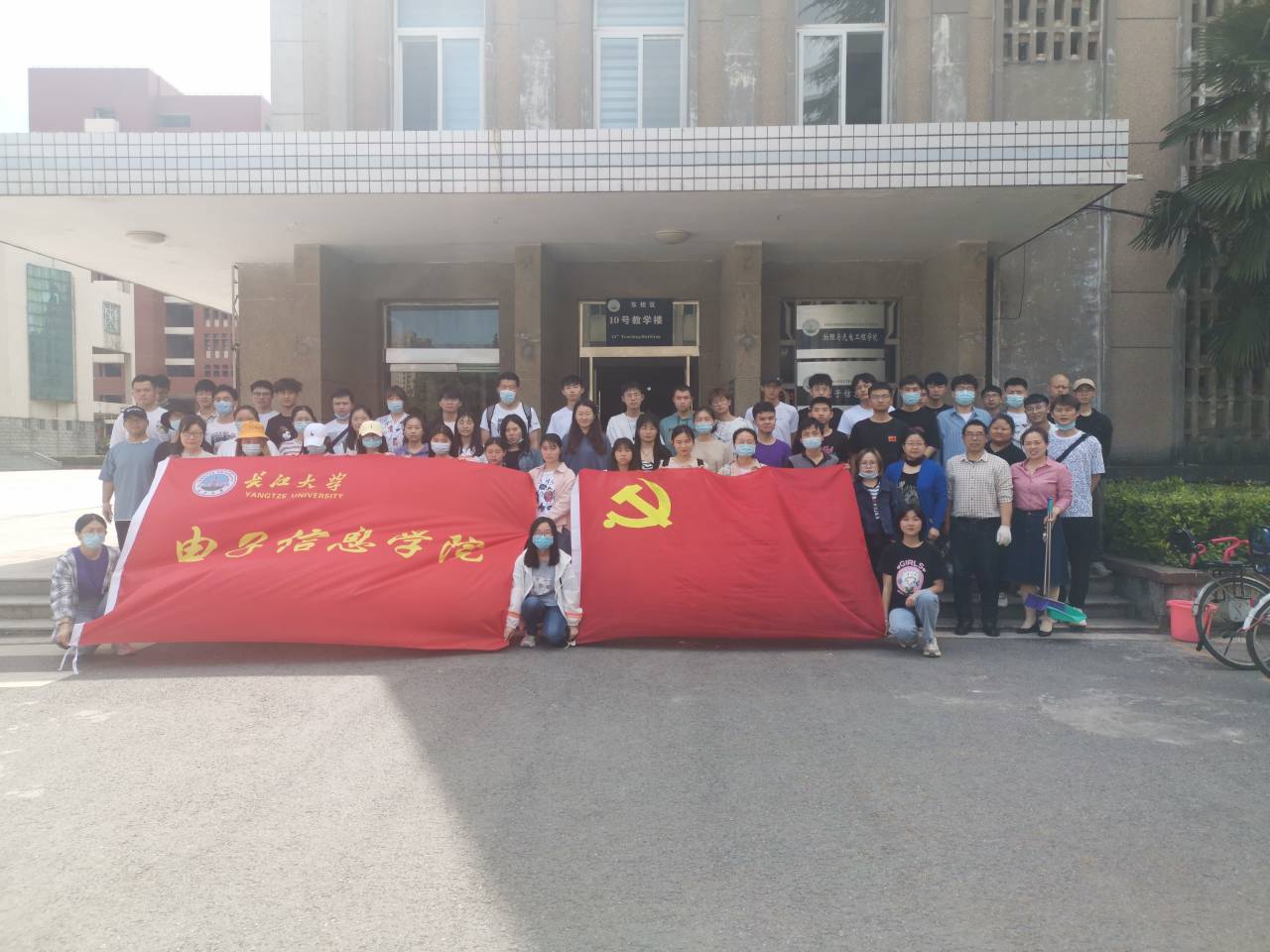 在当天组织的活动中,各支部党员分片区对10号教学楼的花坛进行清理,仪器和自动化支部负责南侧花坛,电气支部负责西侧花坛,信工和通信支部负责北侧花坛,各位党员同志带上手套,按各自分工地段,开展义务大扫除活动。本次活动集中打扫和清除卫生死角的积存杂草杂物、捡拾散落的纸屑、塑料袋等生活垃圾,清理枯死的树木及花池内其他垃圾等。