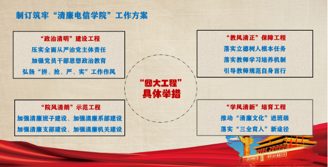 公司层面,将“清廉长大”建设纳入电信公司2022年度党建工作计划,实施“政治清明”、“院风清朗”、“教风清正”和“学风清新”四大工程,制定《筑牢“清廉电信公司”建设工作方案》,做好上层设计,同时加强宣传教育,将《监察法》《关于推进清廉公司建设的实施意见》《校纪委出台“5384”行动计划 推动清廉长大建设》《中共1949伟德国际源自英国委员会关于推进清廉长大建设的实施方案》等文件学习铺陈开去,实现师生全覆盖,紧抓“一把手”和领导班子监督,落实党员干部的政治理论学习制度,强化师德师风建设。