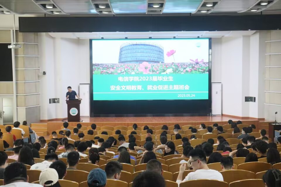 (通讯员:尚玉豪)为确保毕业生离校期间各项工作高效、稳定、有序地开展,5月24日下午,公司在12教405会议室召开2023届毕业生安全教育大会。学工办主任、2023届辅导员颜国琼、就业专干王齐禄、兼职辅导员尚玉豪及2023届全体毕业生参加会议。