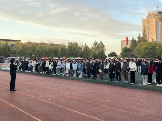 11月6日早上7:00,伟德国际1949在东校区老田径场举行升旗仪式。公司党委副书记张晨露,全体辅导员和2022级、2023级全体本科生参加。仪式由电信类12301班李悦嘉同学主持。