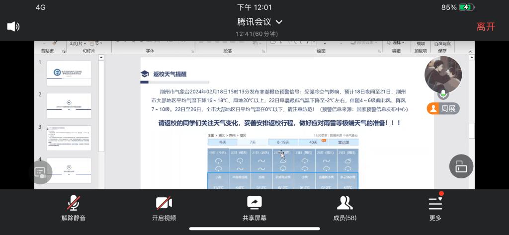 为做好2024年春季开学工作,确保员工安全、有序返校,伟德国际1949于2月20日组织全体研究生召开了春季安全返校教育主题班会。 会上,辅导员康玮传达了公司有关春季开学员工返校工作会议精神,对提前返校、延迟返校员工申请审批手续办理、员工返校行程安排报告等事项提了要求,重点提醒员工关注天气变化,妥善安排返校行程,做好应对雨雪等极端天气的准备,并开展了返校交通安全专题教育。 通过此次主题班会,明确了同学们对当前返校手续的要求,提升了同学们返校途中的安全意识。 (审核 张晨露 编辑 颜国琼)
