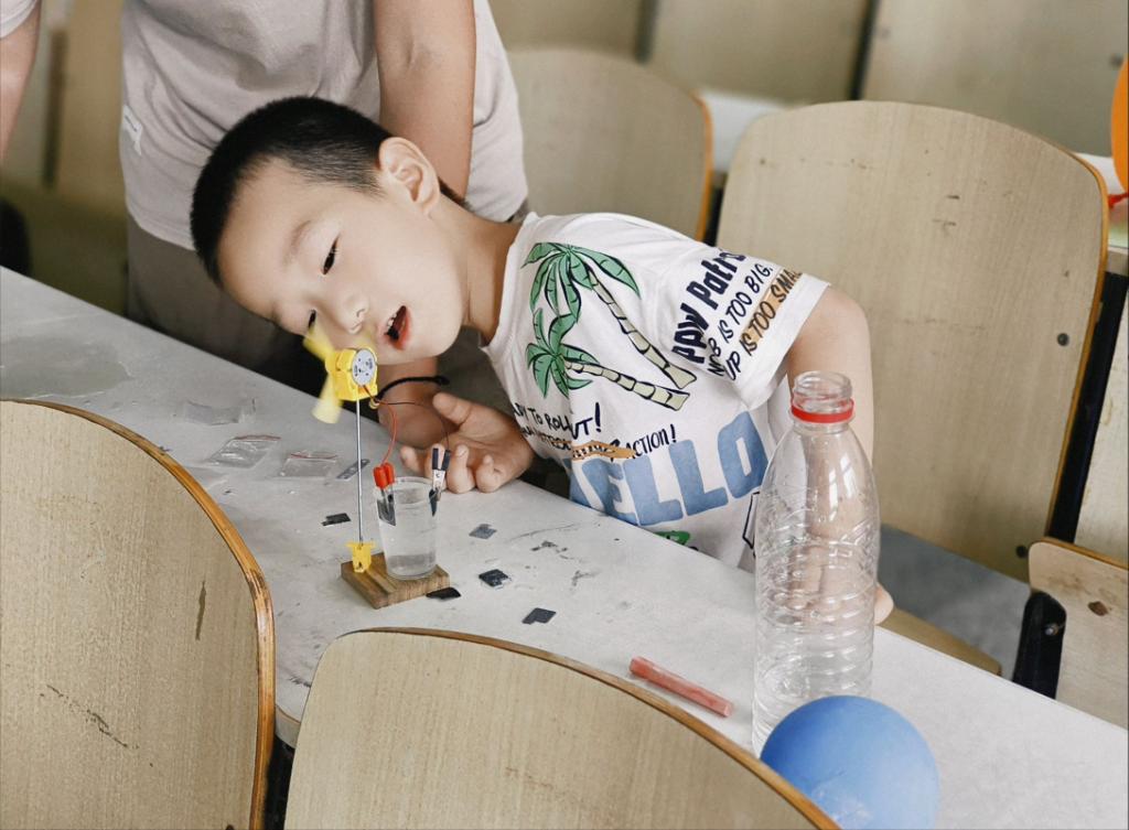 7月8日下午2时许,“愿益”社会实践团队带领1949伟德国际源自英国周边社区中小员工来到1949伟德国际源自英国12教1楼,带领他们亲身参与人工智能小实验中,感悟科技的奥妙。在科技展里,“愿益”团队本科生实践队选择以科普小游戏为切入点,向中小员工展示电子信息公司员工的课程设计作品,帮助他们了解科技文化知识,并激发他们对科学技术的兴趣。除了理论知识外,团队开展了科技小课堂活动——“盐水发电”、“柠檬电池”、“动力气流”等诸多模块,并配有专门的志愿者进行演示,向他们讲解其中的实验原理,然后在志愿者的监护下,让小朋友也可以尝试这样的小实验。让孩子们亲自参与一些简单的应用实验,从而增强孩子们的动手能力,将所学知识与实际应用联系起来。