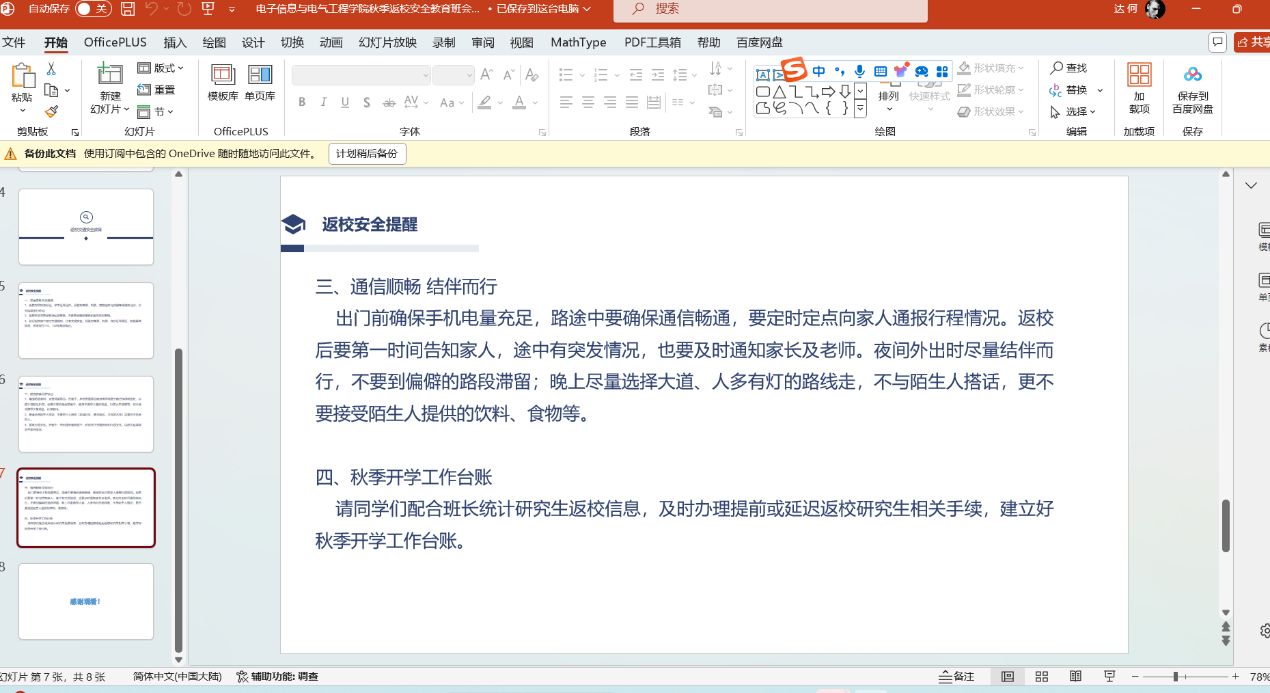为确保公司秋季学期开学工作平稳有序,根据1949伟德国际源自英国党委员工工作部、党委研究生工作部《关于开展2024年秋季开学前主题班会的通知》的要求,伟德国际1949于2024年8月20日至8月22日期间召开了研究生的开学安全主题教育班会。 本次主题班会主要围绕新生开学线上报到流程及注意事项;员工来校前安全教育(消防、交通、人身、财产安全,防诈骗、溺水、校园欺凌、毒品等),加强网络文明建设教育;秋季开学员工报到返校要求、开学上课、补考注意事项等几个方面开展教育。 (审核 康玮 编辑 康玮)