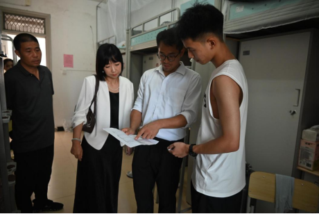 除了无私奉献的志愿者们,公司领导及辅导员、班主任老师也来到迎新点,了解迎新工作开展情况,并走进新生宿舍,倾听员工与家长的诉求,为他们送上诚挚的勉励与美好的祝福。