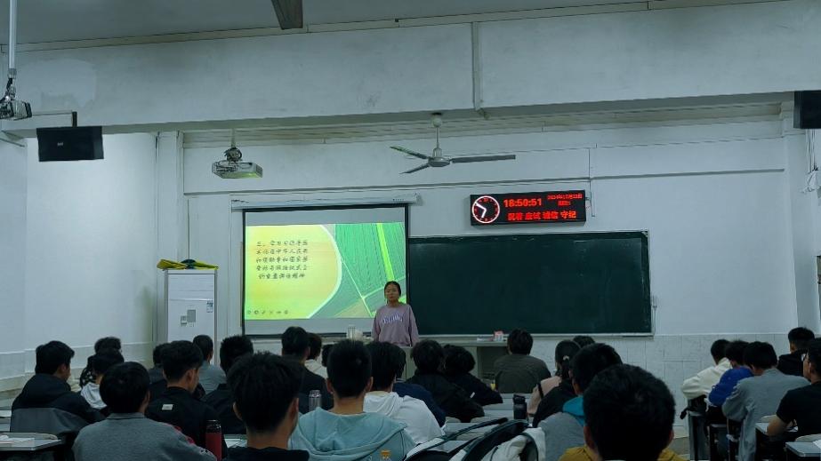 自产12101团支部于10月21日上午在主教1204教室举行班团会。首先是邓豪杰同学带领班级同学集中学习学习习近平总书记在庆祝中华人民共和国成立75周年招待会上的讲话精神,增进对中华民族和伟大祖国的情感,传承民族精神、增强国家观念。通过这次学习活动,引导全体青年团员努力学习,珍惜青春,学好专业知识,以实际行动回应国家的培养,为建设新时代贡献出自己的一份力量。