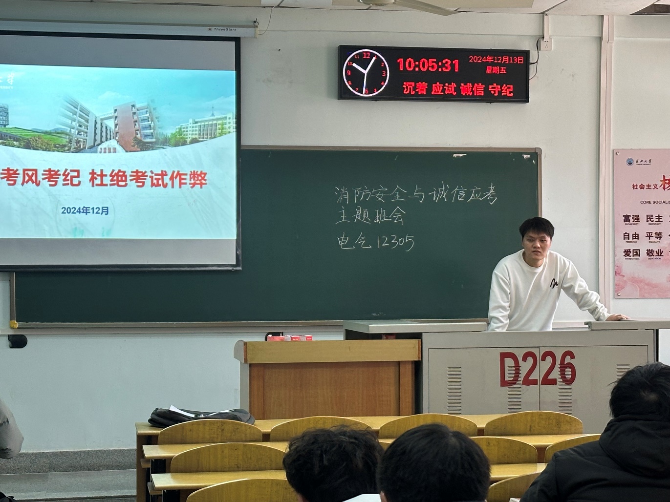 通过本次班会的开展,同学们在消防安全、诚信应考等方面都收获了丰富的知识,增强了自我保护意识和责任感。后期,公司将继续按照公司要求,全方位开展宿舍安全隐患排查工作,确保各项工作落到实处。