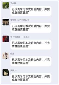 212-14日,公司各年级分别采用雨课堂、辅导猫、QQ群等发布学习任务,采用多种形式组织员工观看微课、集中参与讨论并利用网络平台收集员工观看微课的效果及状态,对个别存在一定恐慌心理的员工进行有针对性的心理疏导。