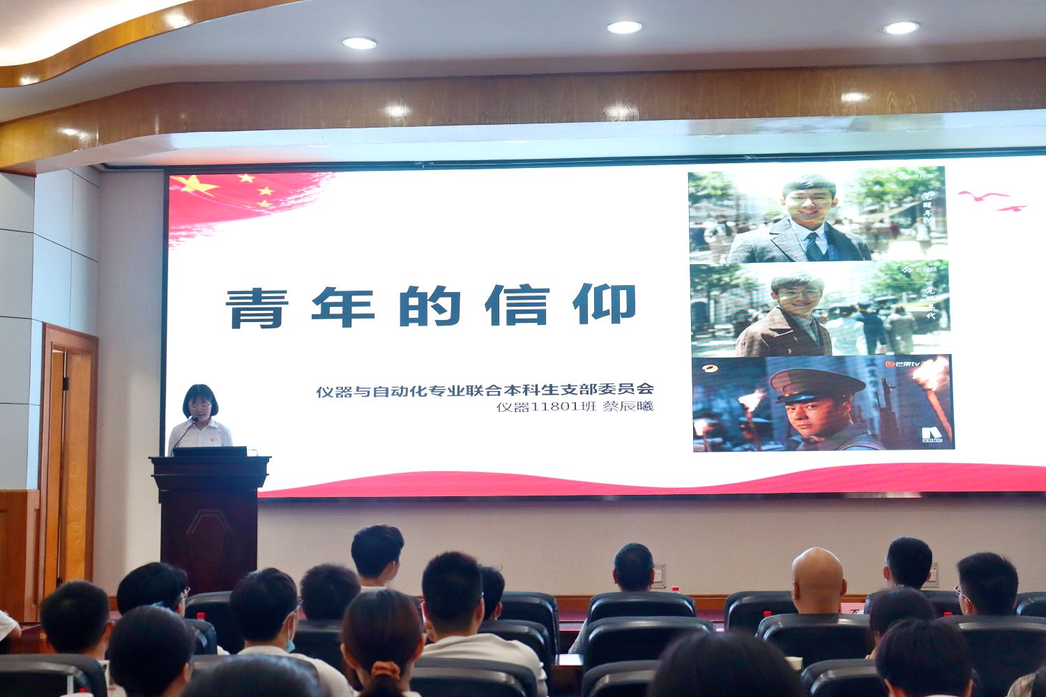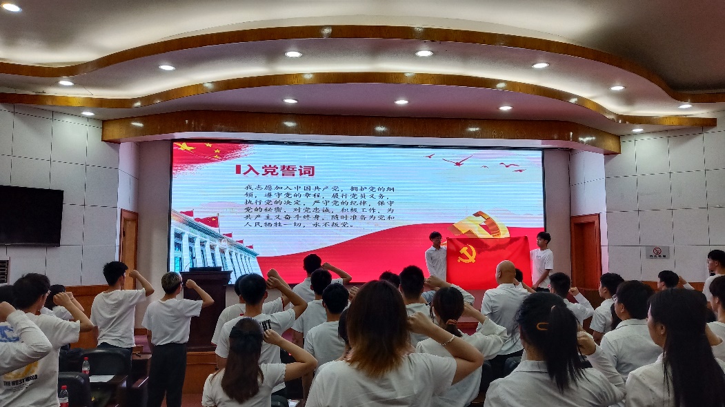 “我志愿加入中国共产党,坚决拥护党的纲领……”在各位同志庄严的宣誓声下,活动正式拉开序幕。仪器与自动化支部蔡辰曦通过讲述《觉醒年代》中陈乔年和陈延年的人生故事,道出永葆初心跟党走才是青年应有的信仰。紧接着,电气支部王欣然带来个人朗诵《一百年风雨兼程》,带领大家了解中国共产党的百年中的辉煌成就。随后,信工与通信支部张世娇、陈佳路、南颖、李范华4人以朗诵《盛世中国》歌颂了祖国的伟大。