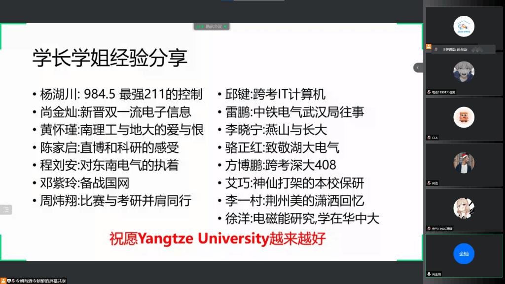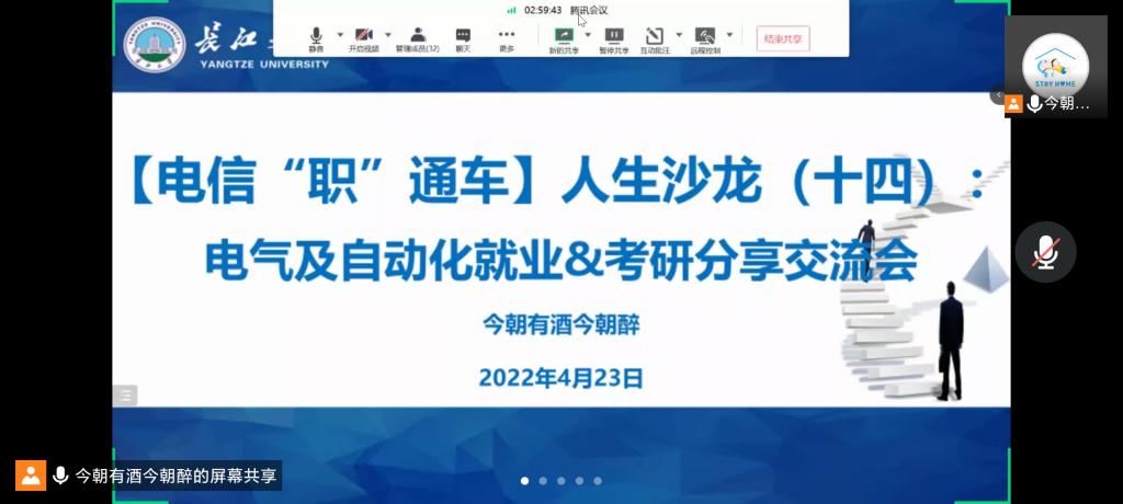 (通讯员 何达)努力拼搏,放飞考研梦想;激情飞扬,彰显青春魅力。为进一步加强同学们对研究生入学考试的认识,了解前沿的就业形势、增强考研斗志。4月23日晚,公司在线上举办了“电气及其自动化就业&考研分享交流会”。会议由2017级部分优秀毕业生主讲,2019级电气及自动化专业的同学们聆听本次会议。
