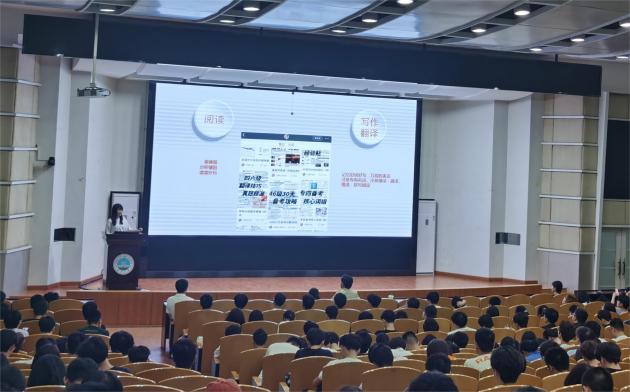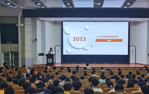 本次大会还邀请了优秀员工代表2021级程卓玲进行英语学习经验分享会。交流会上,程卓玲同学主要从考前准备的多个方面展开,建议同学们把握好剩下的两个月时间,制定好计划。她向同学们推荐了在B站上寻找学习资源,随后系统地介绍了各部分的做题技巧和训练方法,并建议同学们利用好课外时间,注意积累词汇,提高课外阅读量,以提高自身的英语能力。最后,程卓玲同学提醒同学们要找到适合自己的做题方法,并预祝同学们在四六级考试中取得好成绩。