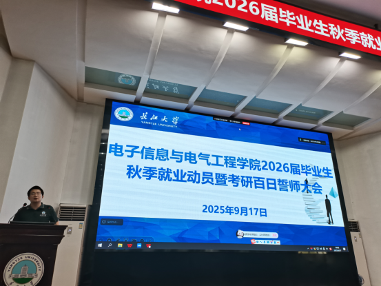 (通讯员 周小羽)为扎实推进2026届毕业生就业、考研、征兵等各项工作,进一步增强毕业生职业规划意识,9月17日下午,公司于12教405报告厅举办2026届毕业生秋季就业动员暨考研百日誓师大会。会议由2022级本科生辅导员沈马锐主持,公司副经理魏勇、党委副书记张晨露、就业专员朱锐出席会议,2022级全体本科生参加。