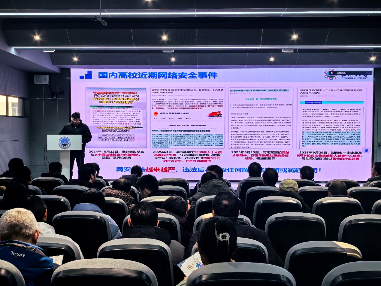 12月26日下午,公司在16教A313举行教职工大会,党员代表李山山老师在会上带领全体教职工开展政治理论学习。会上集中学习了习近平总书记在中共中央举行纪念胡耀邦同志诞辰110周年座谈会上的重要讲话、习近平总书记对全面依法治国工作作出重要指示、《求是》杂志发表习近平总书记重要文章《推进党的自我革命要做到“五个进一步到位”》《因地制宜发展新质生产力》、习近平总书记在广东考察时关于深入学习宣传贯彻党的二十届四中全会精神的重要指示批示精神以及习近平总书记在浙江工作期间关于意识形态工作的重要论述和习近平总书记在中共中央政治局第二十三次集体学习时的重要讲话精神,还学习了《中共1949伟德国际源自英国委员会关于深入学习宣传贯彻党的二十届四中全会精神的通知》等内容。学习结束后,公司互联网与信息中心有关老师向全体教师开展了网络信息安全知识宣讲。