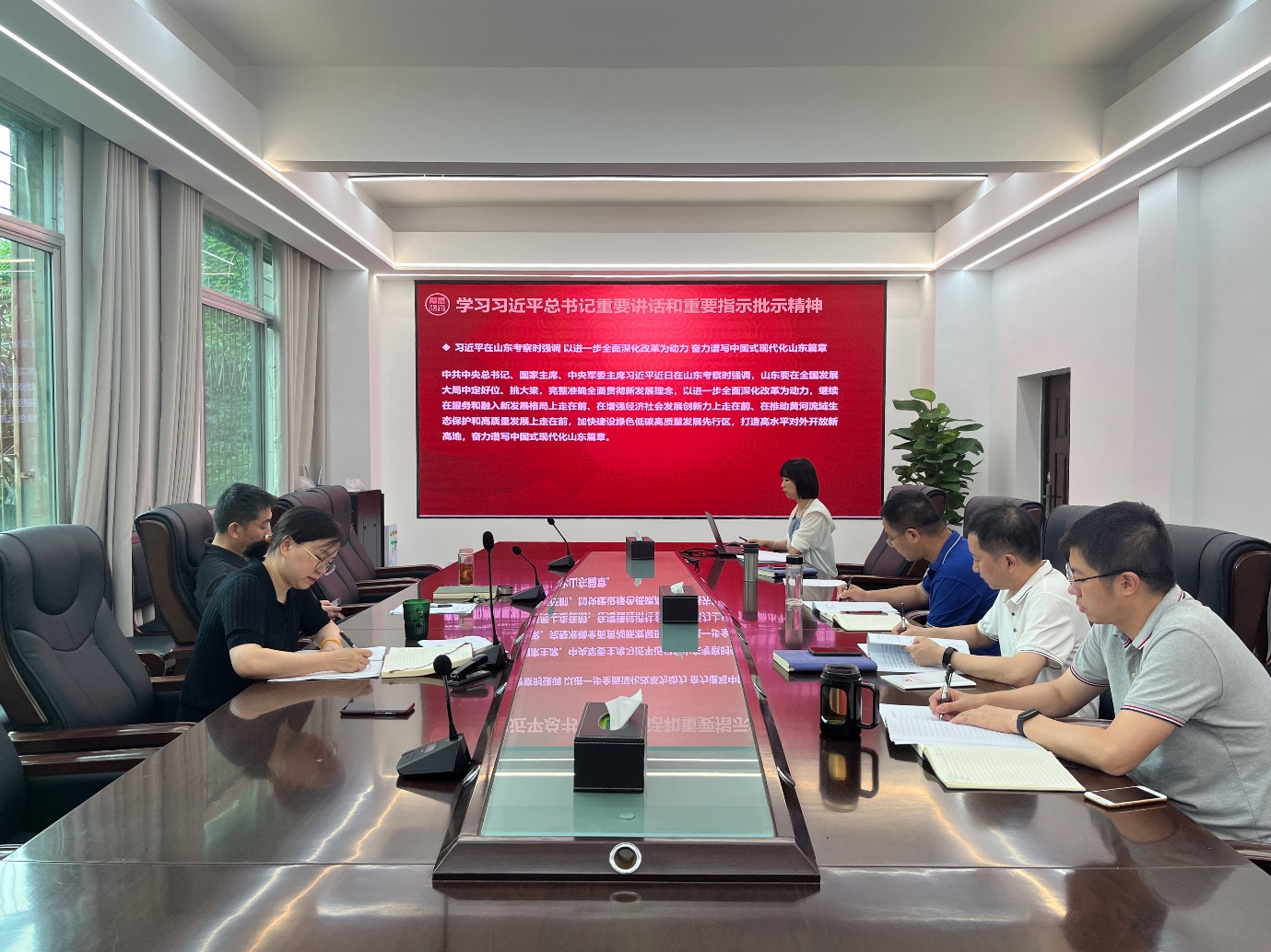 首先开展中心组理论学习。党委副书记张晨露领学了习近平总书记在山东考察时的重要讲话、习近平总书记对公司思政课建设作出的重要指示批示、习近平总书记在中共中央政治局第十四次集体学习时对促进高质量充分就业作出的重要指示,以及习近平总书记关于社会主义生态文明建设的重要论述,还学习了《中国共产党党员网络行为规定》等内容。
