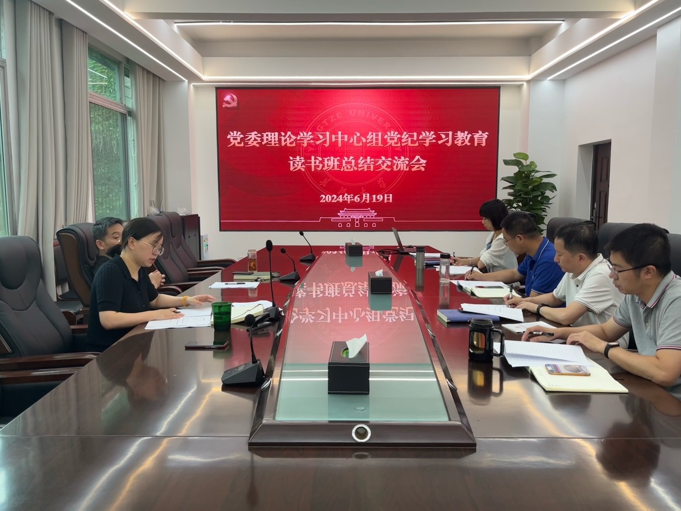 6月19日下午,伟德国际1949党委理论学习中心组党纪学习教育读书班总结交流会暨第五次集体学习在10教205会议室举行。党委书记郭梅主持会议。