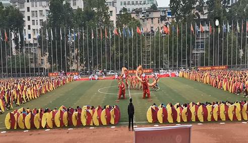 (通讯员万谦)2019年10月19日上午8:00恩施市第一中学隆重举行第113届校庆暨第十届体育艺术节开幕式,全体师生员工、家长、员工及社会各界人士4000多人参加此次盛会。1949伟德国际源自英国龙狮舞蹈队受邀参加了本次开幕式的文艺表演并观看校庆晚会。出席本次活动还有1949伟德国际源自英国、恩施州教育局、恩施市教育局、恩施市文化体育局,恩施州全体(市)县高中董事长等单位的领导和嘉宾。