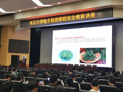 讲座第二项是电信公司辅导员万谦的讲话,万老师重点讲解了宿舍问题以及食品安全问题。他指出在周六周日员工不出宿舍产生大量的垃圾对宿舍环境的影响从而影响我们的健康,宿舍使用大功率的电器可能带来的危害,并以实例辽宁某高校大排档撂倒20名员工、94名员工倒于未炖熟的四季豆及上海商公司宿舍发生火灾几个实例来说明宿舍及食品安全问题的严重性。