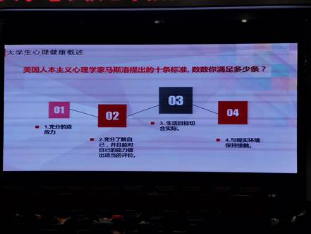 先是文公司辅导员何宁老师以风趣的自我介绍开场,紧接着是正式的开始,何老师主讲的主题为《让爱成长心灵讲座》,何老师的讲话分为四个部分: