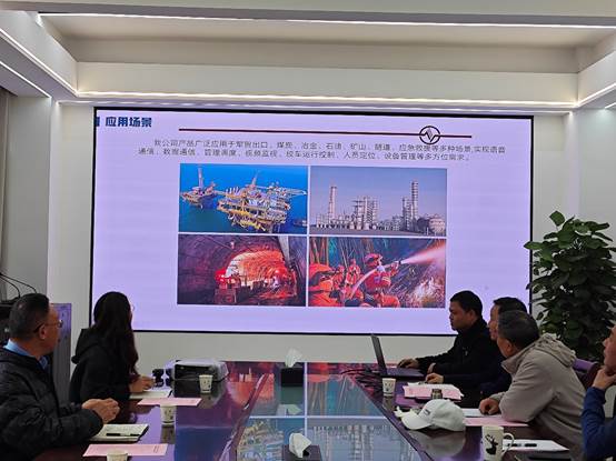 许良华总经理讲述了沙鸥关于我们及发展历程、业务范围。公司技术研发部部长卢忠强介绍了公司产品亮点,应用场景及性能指标。他重点介绍了KTL110A漏泄通信信号系统和无极绳绞车电控系统。KTL110A漏泄通信信号系统用于绞车、单轨吊、皮带等设备的运行控制,能实现井下工作人员之间的语音通话,方便工作协调和信息交流,并确保信号的可靠性,减少因信号失联或误发导致的安全隐患,保障井下作业安全进行,在遇到紧急情况时,还可通过该系统及时发出报警信号,以便采取相应救援措施。无极绳绞车电控系统能实现对无极绳车的启动、停止、加速、减速等操作控制,精确调节绞车的运行速度,并实时监控速度参数,一旦发现异常情况,系统能立即发出报警信号,同时系统还能自动记录故障信息,记录绞车运行的相关数据等。