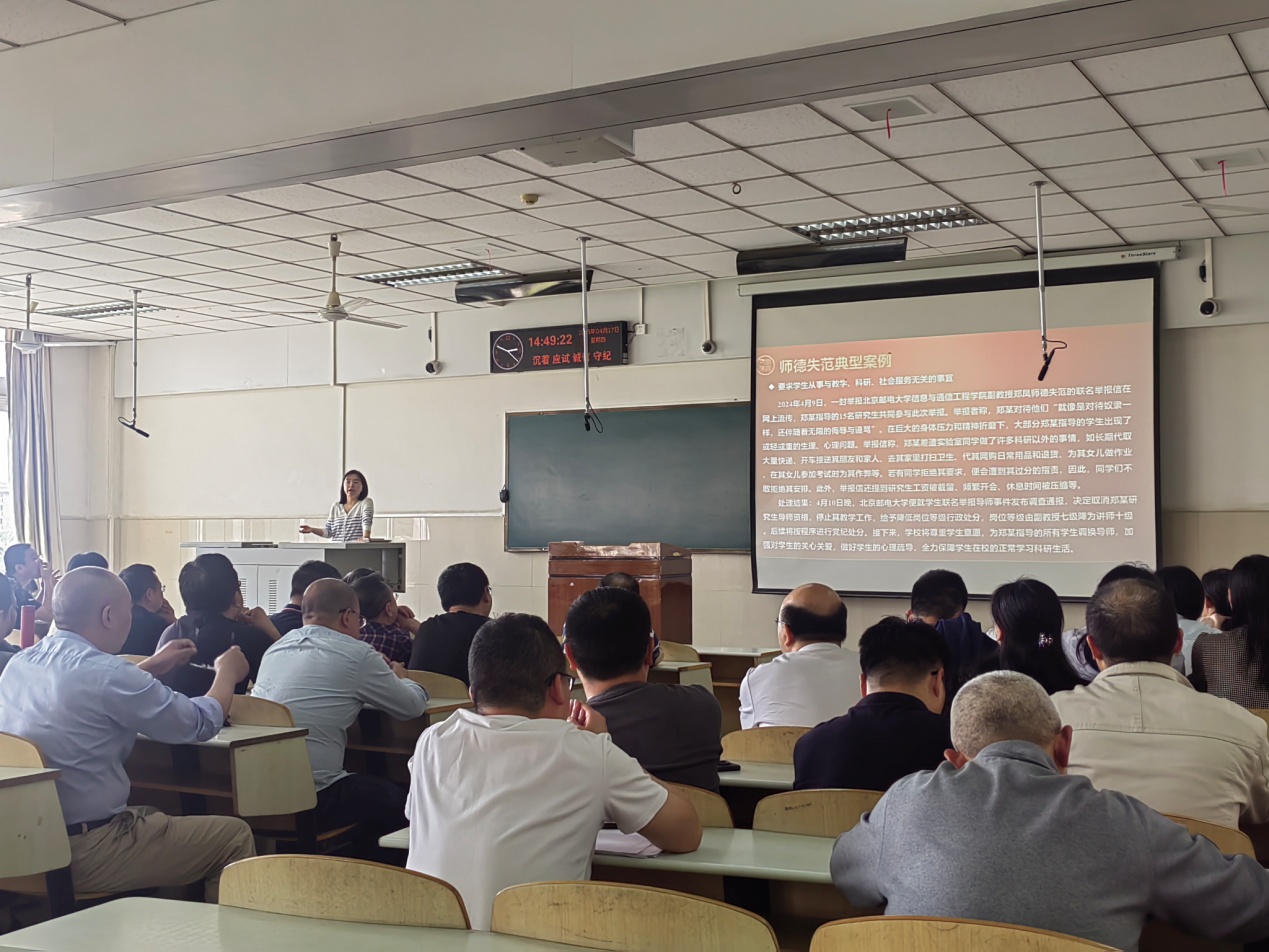 郭梅向全体教师传达了人力资源部关于师德师风建设月活动的相关通知精神,带领全体教师集中学习了全国教育大会精神,围绕近年来高等教育系统内发生的师德失范典型案例进行深入剖析。案例涵盖学术不端、违反公序良俗、违反教学纪律等多个方面,通过详细阐述事件经过、处理结果以及造成的恶劣影响,让全体教师深刻认识到师德失范行为的严重后果。每一个案例都如同警钟,发人深省,让教师们深刻意识到,在公司产品工作中,必须时刻保持清醒头脑,坚守职业道德底线。