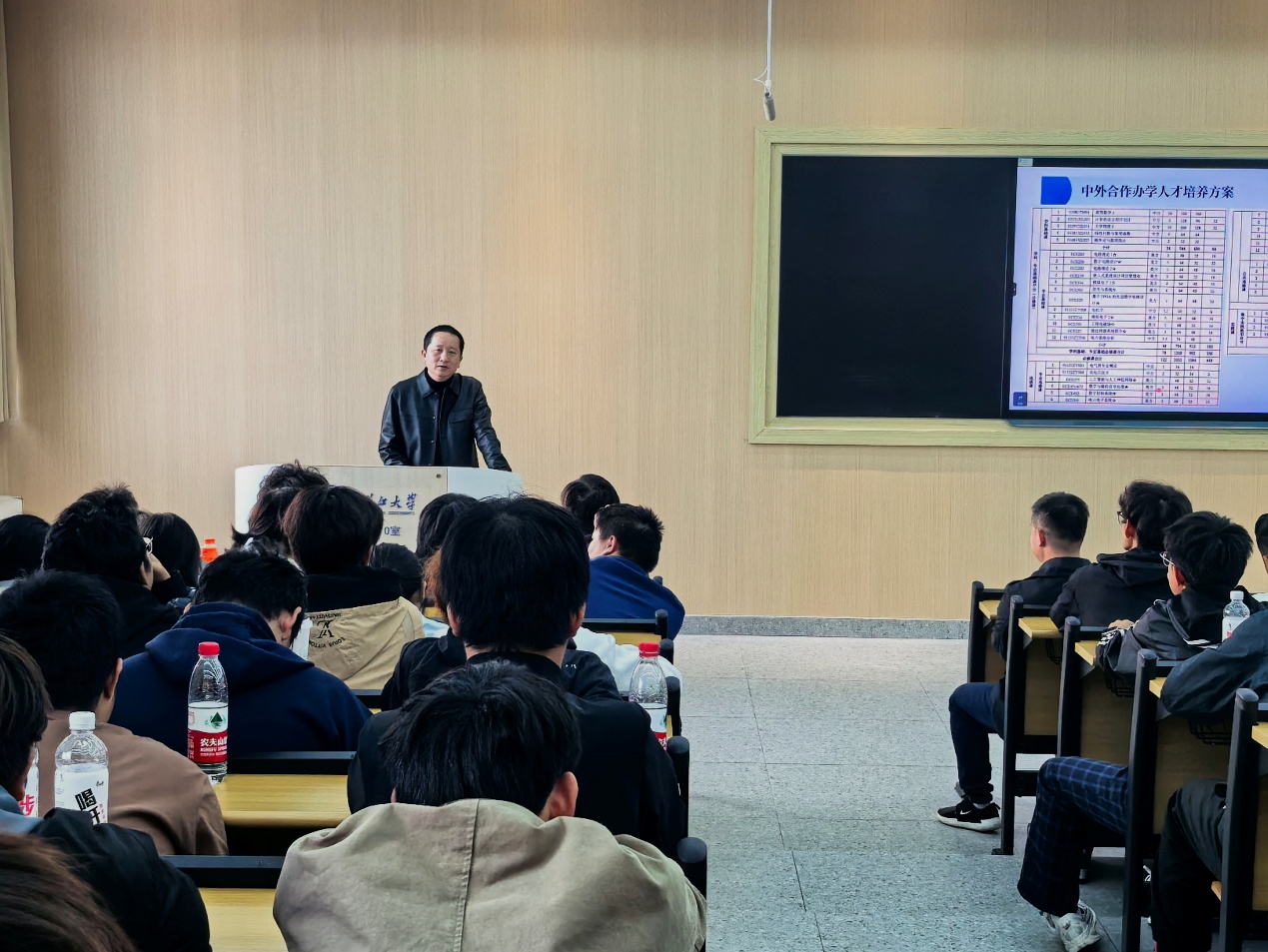 会上,系主任叶老师围绕项目合作单位——美国圣克劳德州立大学展开了介绍。他不仅全面介绍了圣克劳德州立大学的办学历史、学科优势、校园环境等基本情况,还回顾了两校在合作过程中建立的深厚友谊与丰硕合作成果,让同学们对合作院校有了全面且立体的认知。随后,现场播放了圣克劳德州立大学官方宣传视频,生动直观的画面进一步展现了该校的办学特色与校园风貌。更令人期待的是,叶老师还通过视频形式,分享了圣克劳德州立大学留学生的真实体验,职工们从学习氛围、生活环境、文化融入等多个角度,讲述了自己的成长故事与感悟,为在场同学未来可能的留学之路提供了宝贵的参考。