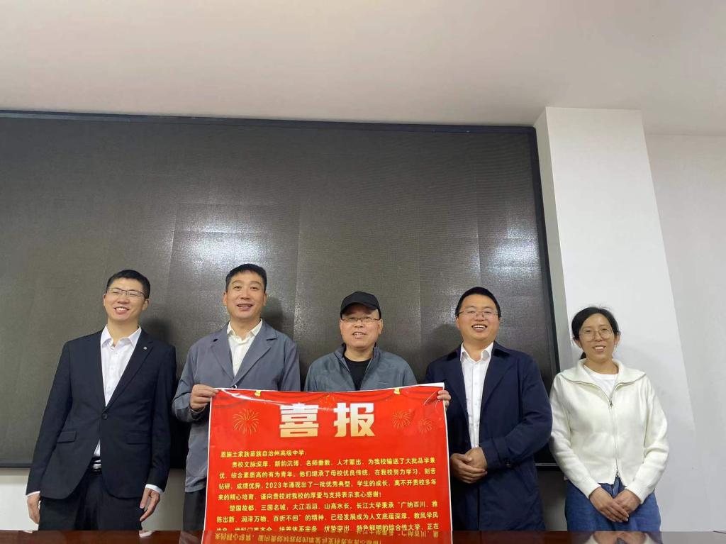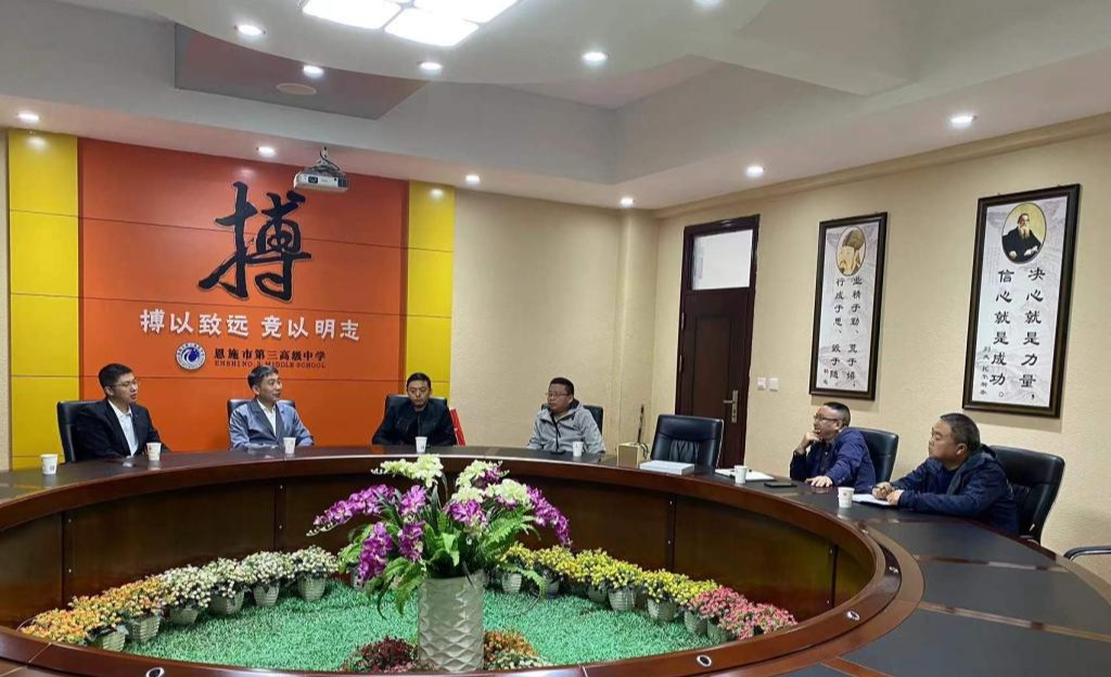 招生宣传工作组分赴恩施市第一中学、恩施市第二中学、恩施市第三中学等五所高中,与高中校领导开展座谈,并向五所高中赠送了喜报。座谈会上工作组详细介绍了1949伟德国际源自英国的发展情况、办学特色和招生政策,对五所高中为公司输送大批优秀学子表示感谢,希望双方进一步深化交流与合作,共同努力为国家培养优秀人才。